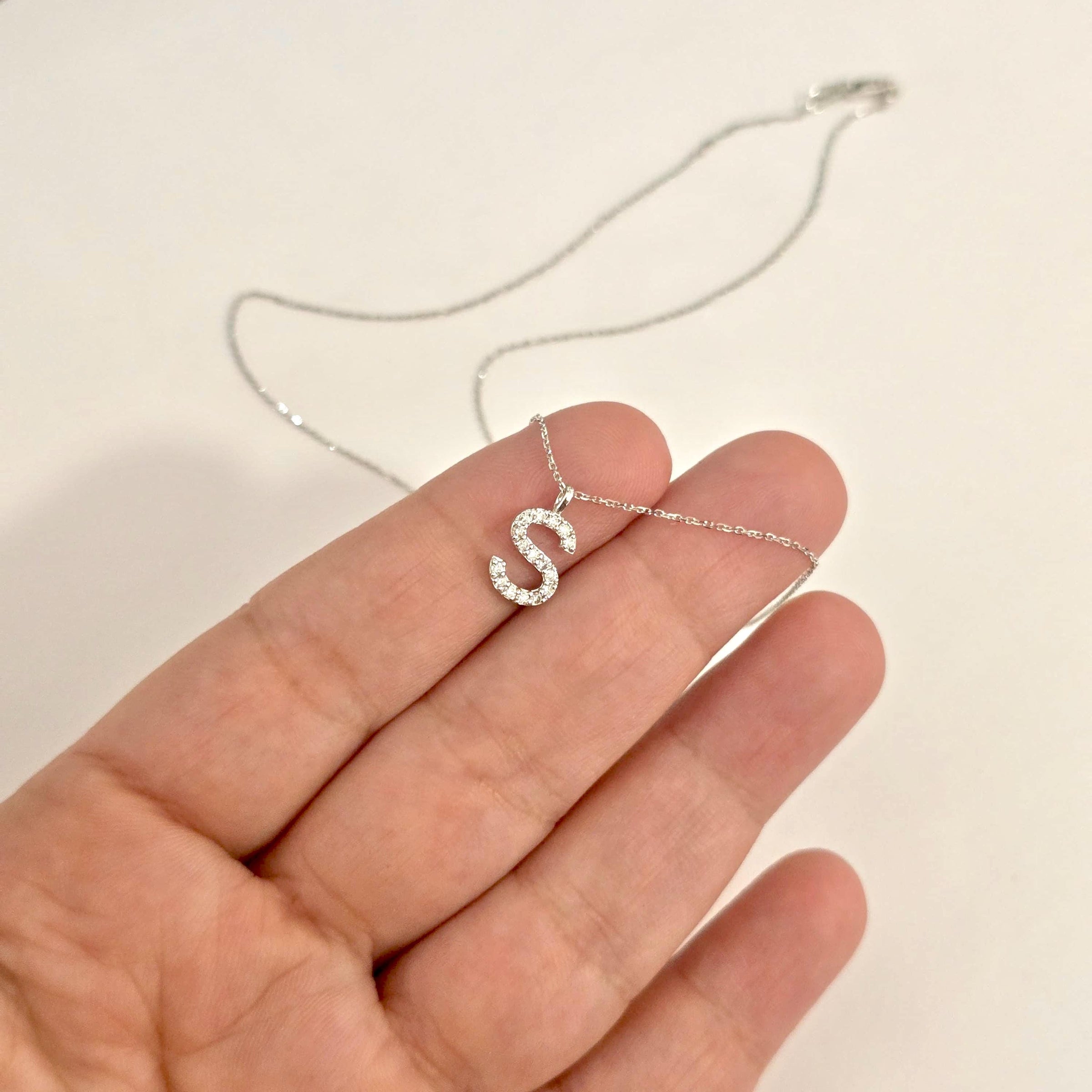 14K Gold Diamond Initial Necklace • Dainty Letter Charm