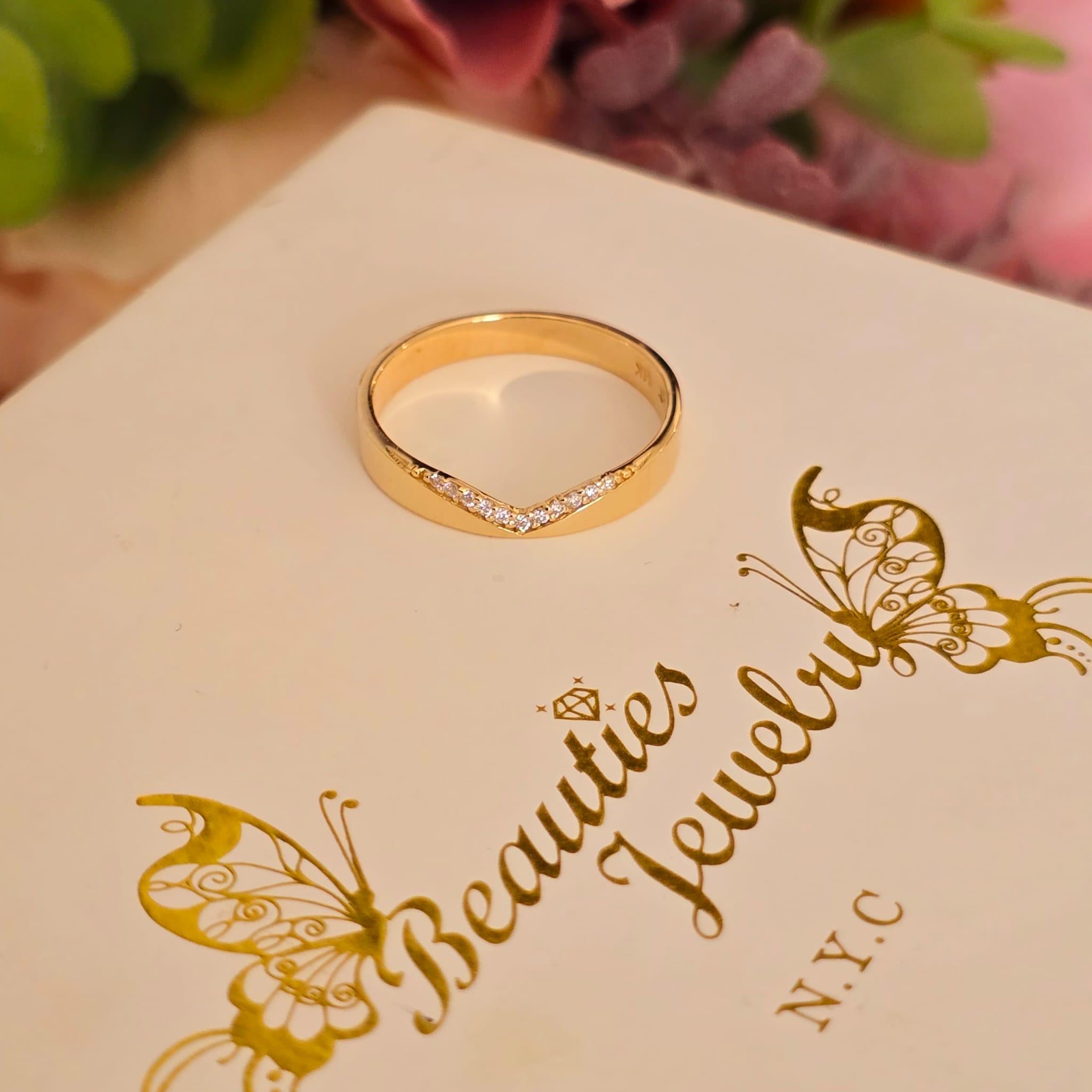 Celebrate timeless elegance with our handmade diamond chevron wedding band, beautifully crafted to add a delicate sparkle to any bridal stack. This V-shaped ring features a graceful curve adorned with natural white diamonds, designed to perfectly complement engagement rings or shine on its own as a minimalist statement.