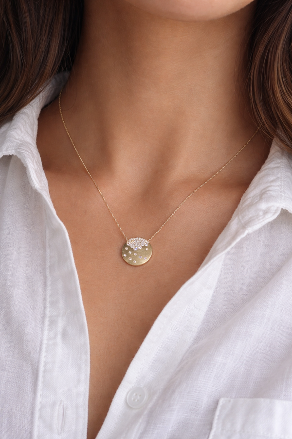 14k Diamond Necklace, Gold Amulette Necklace, Genuine Diamond Pendant, Unique Circle Necklace
